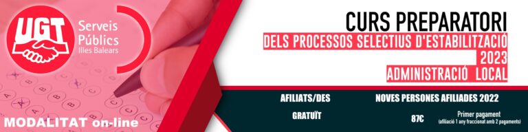 CURS PREPARATORI DELS PROCESSOS SELECTIUS D’ESTABILITZACIÓ ADMINISTRACIÓ LOCAL (inscripcions finalitzades) noviembre 25, 2022 Leer más »
