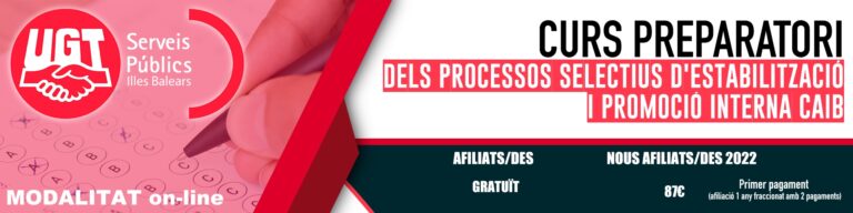 CURS PREPARATORI DELS PROCESSOS SELECTIUS D’ESTABILITZACIÓ I PROMOCIÓ INTERNA DE LA CAIB octubre 21, 2022 Leer más »