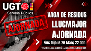 UGT ajorna novament la vaga de residus de Llucmajor i reclama una solució estable marzo 20, 2026 Leer más »