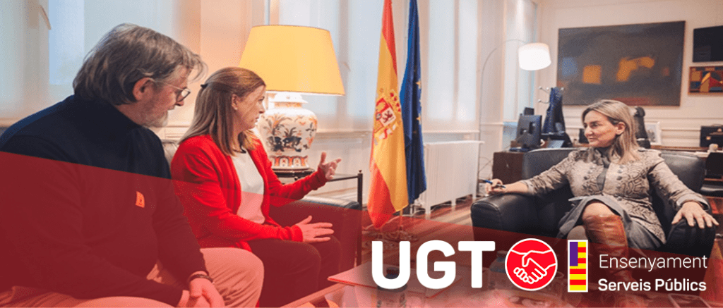 UGT es reuneix amb la ministra d’Educació, Milagros Tolón, per exigir avenços reals en la millora de les condicions sociolaborals del professorat enero 19, 2026 Leer más »