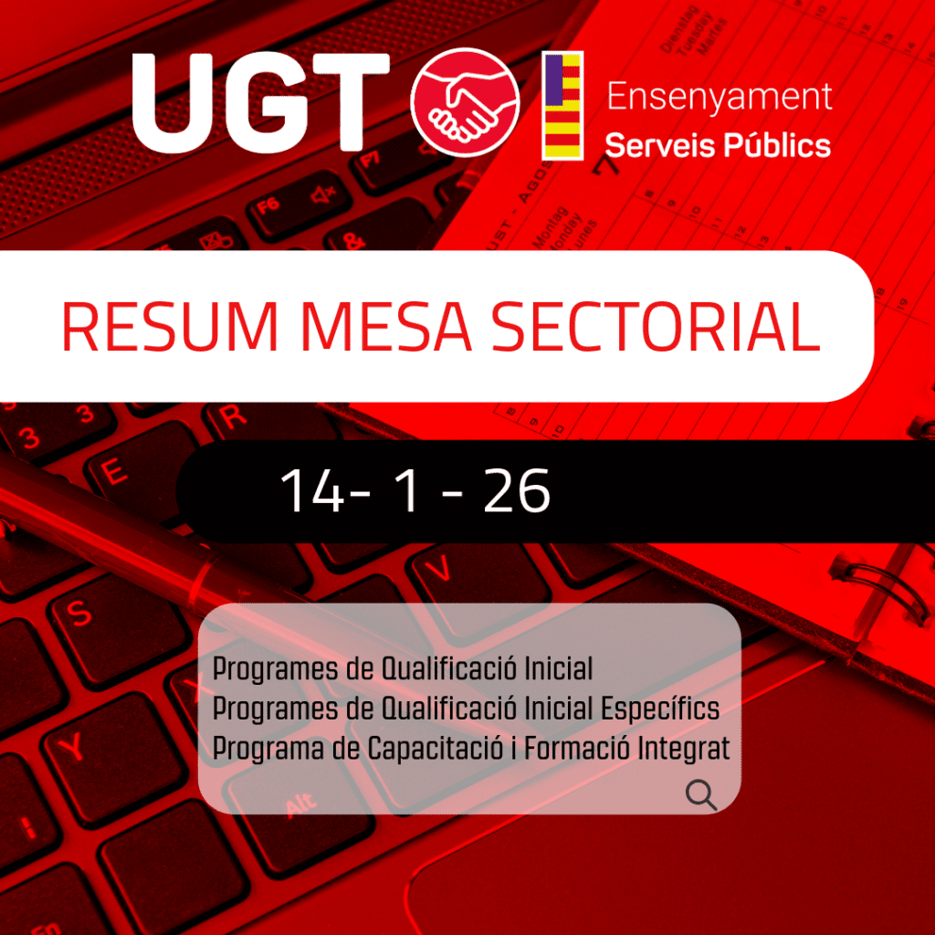 Mesa 14-1-2026 – Programes de Qualificació Inicial i Programa de Capacitacaió i Formació Integrat enero 15, 2026 Leer más »