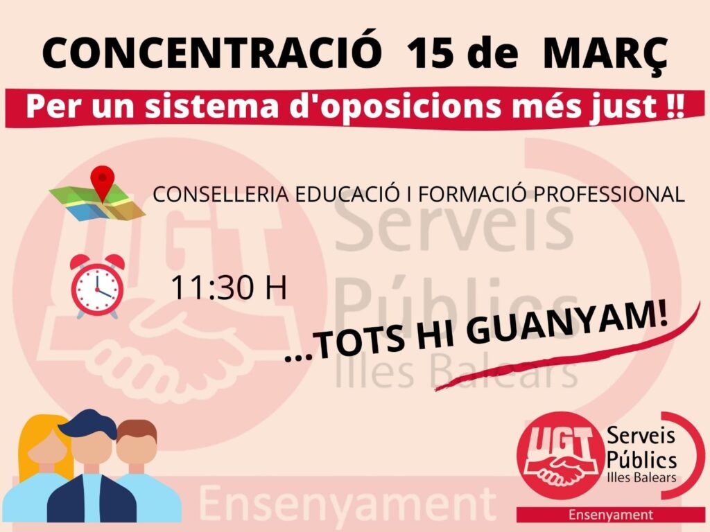 UGT Ensenyament es planta davant la Conselleria d’Educació i Formació Professional pel sistema d’oposicions marzo 14, 2022 Leer más »