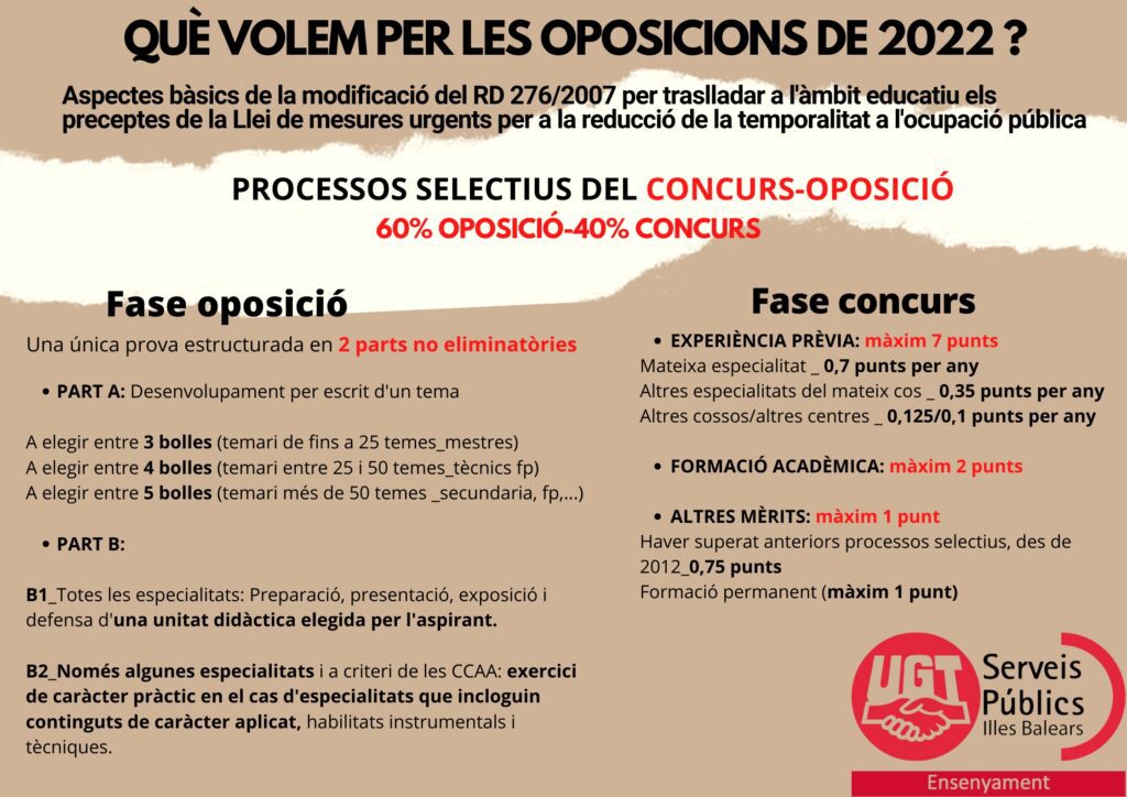 UGT reclama que les convocatòries d’oposicions docents de 2022 es realitzin conforme al Projecte de llei per reduir la temporalitat i l’estabilitat a l’ocupació aprovat ahir diciembre 3, 2021 Leer más »