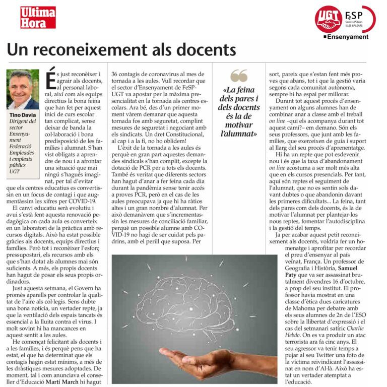 UGT informa: El sindicat UGT demana unes mesures clares per la ventilació als centres noviembre 11, 2020 Leer más »