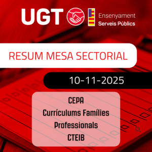 UGT Ensenyament aconsegueix que la Conselleria d’Educació retorni el 2,9% retallat al professorat de la concertada noviembre 10, 2025 Leer más »