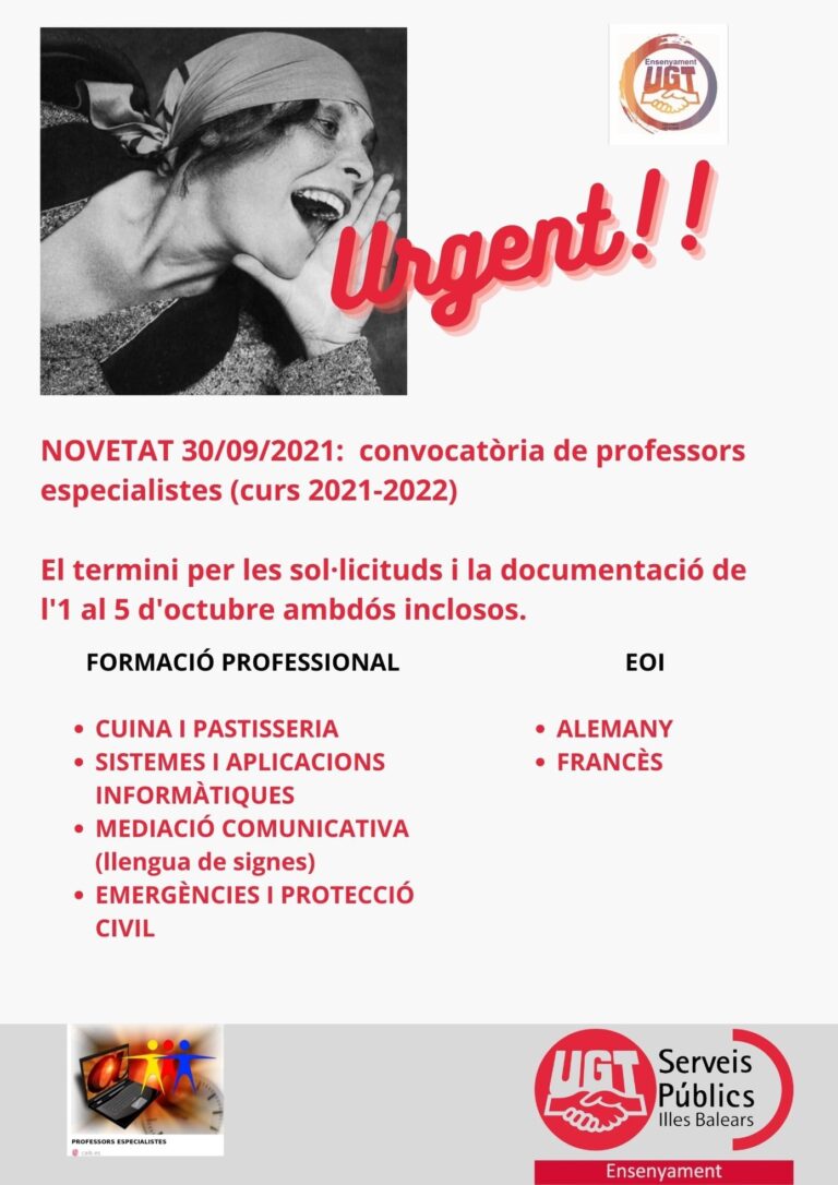 NOVA CONVOCATÒRIA PROFESSORS ESPECIALISTES (FP i EOI) !