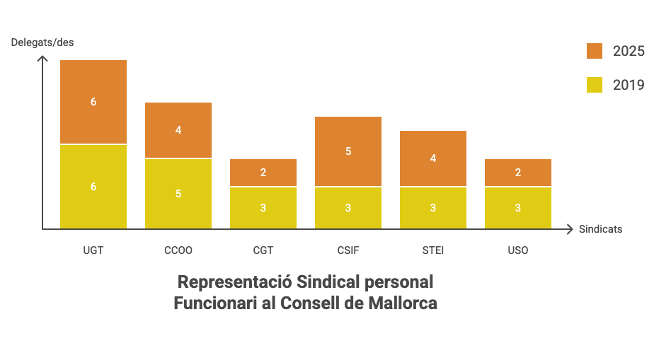 Sumant totes les meses i òrgans de representació del Consell de Mallorca i l’IMAS, UGT torna a liderar.