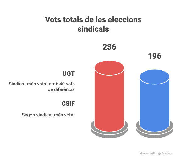 UGT és el sindicat més votat, amb 40 vots d’avantatge respecte a la segona força.