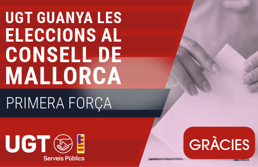 UGT Serveis Públics Illes Balears revalida, per segona vegada consecutiva, la victòria a les eleccions sindicals del Consell de Mallorca i de l’IMAS. Amb 16 delegades i delegats, tornam a ser el sindicat amb més representació en tot l’àmbit institucional.