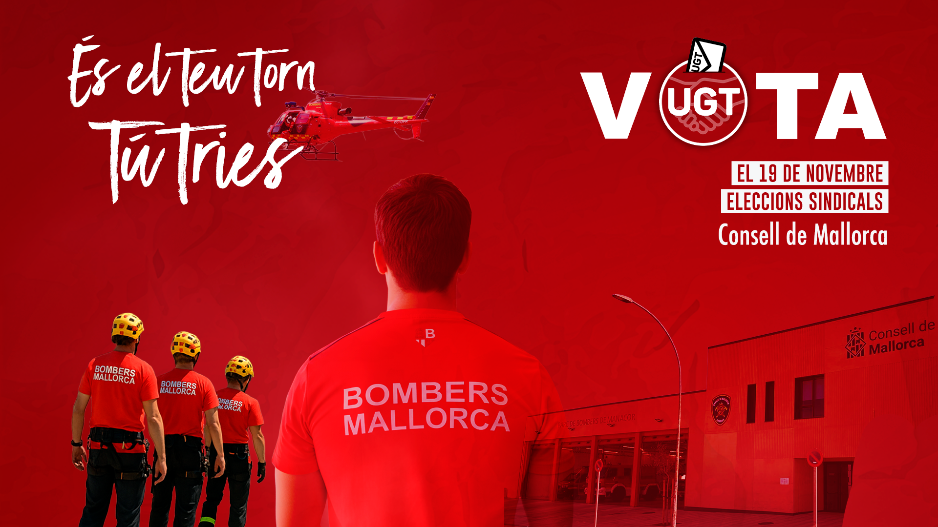 UGT Serveis Públics Illes Balears presenta el seu programa per a les properes eleccions al Comitè d’Empresa del Servei de Bombers de Mallorca. Un programa basat en els fets aconseguits i en els compromisos de futur per continuar millorant el servei, les condicions laborals i la seguretat de totes i tots els professionals que el fan possible.